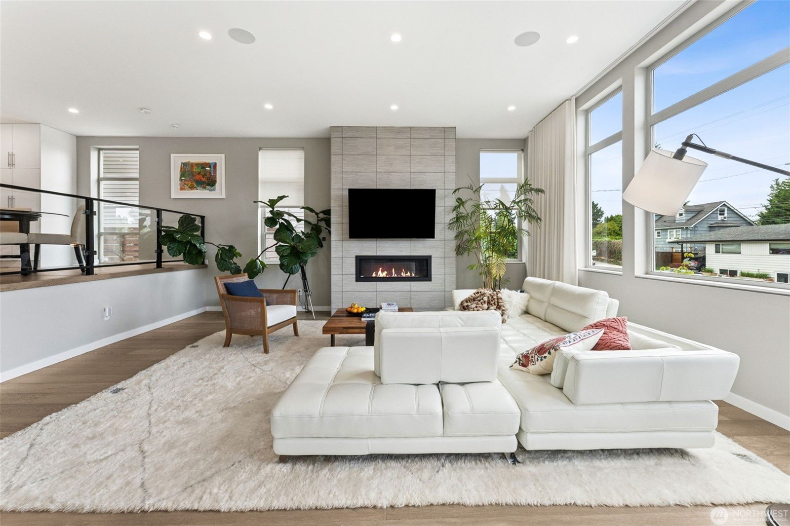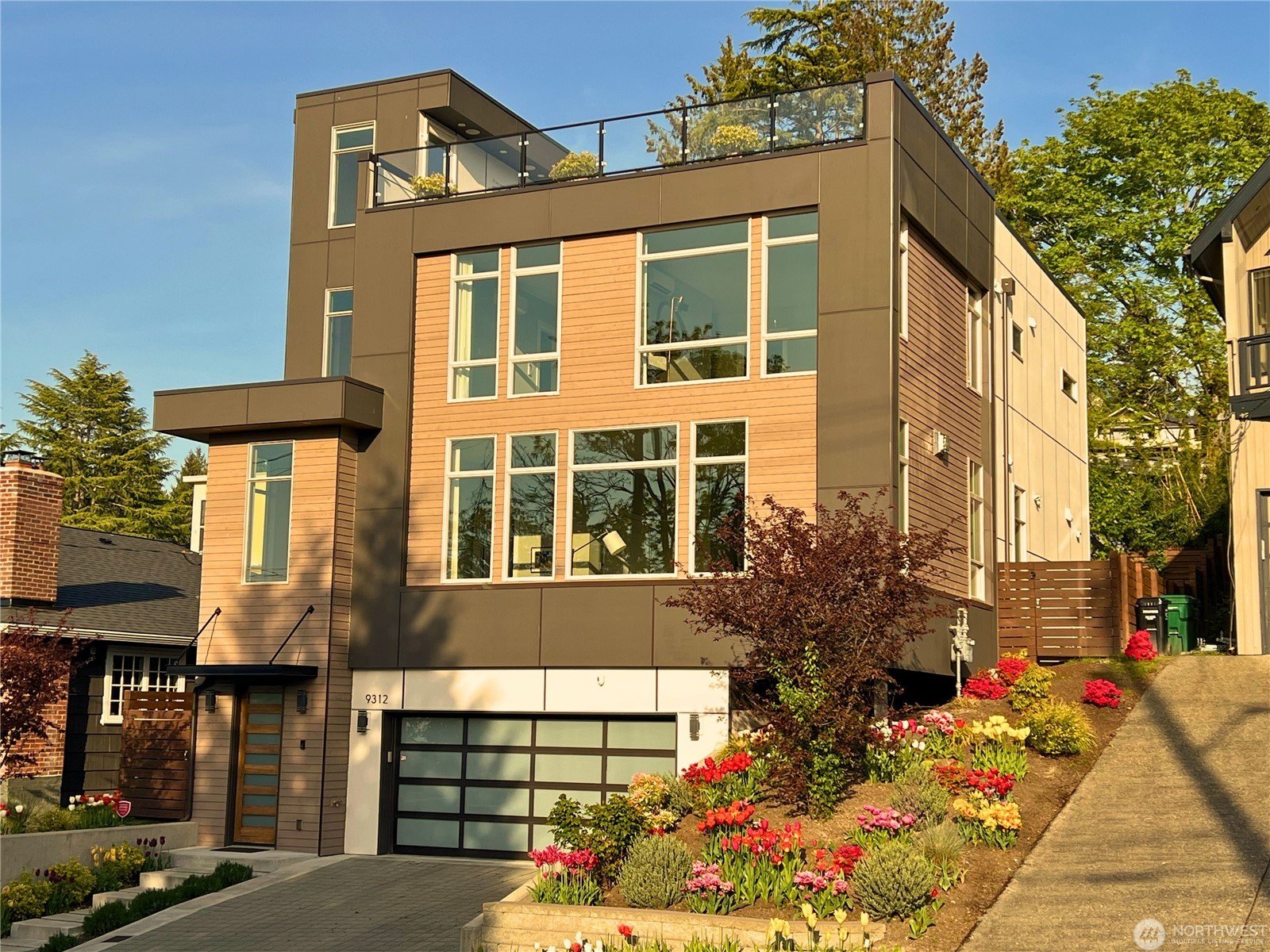 Incredible Sound, Olympic, Maritime views. This contemporary home has a large open floor plan with 4 bedrooms on the upper level, including a primary suite. No detail spared - many upgrades: Sonos speaker system throughout, A/C, epoxy garage floors, security system, window treatment. Open chef's kitchen - high-end appliances, oversized island, gas range, breakfast area, full dining room. Office on the main floor. 1,000sf rooftop outdoor living area is an entertainer's dream with poetic views and gas+water connections. Abundant windows welcome ample natural light. Walkable location to many area amenities: Lincoln Park, Coleman Pool, Ferry, Endolyne Joe's, and Wildwood Market.